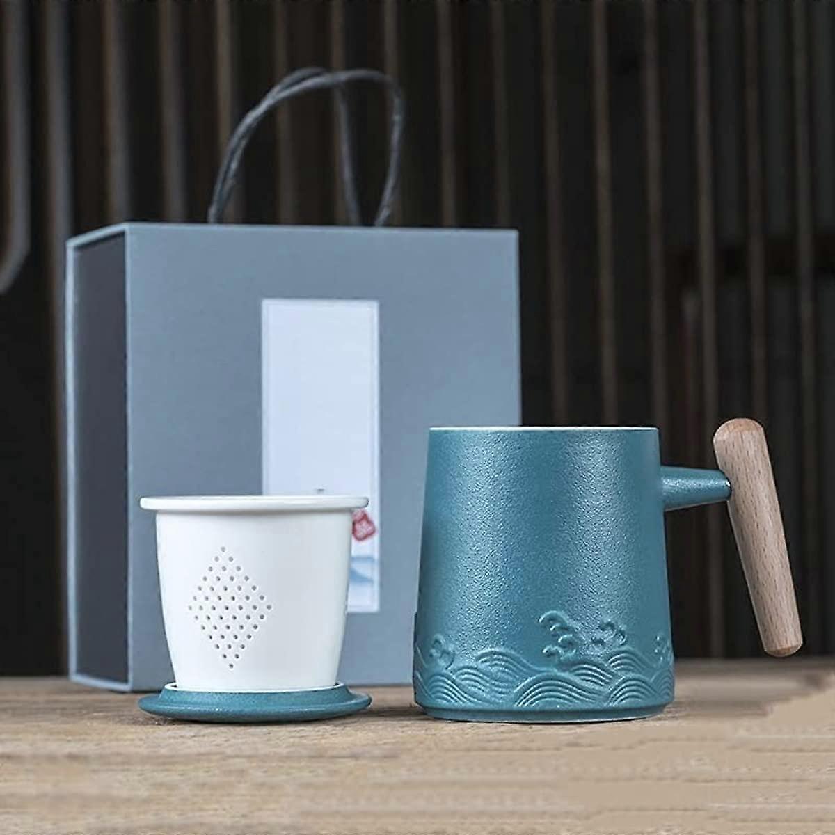 Cups 400ml Mug Tea Separated Tea Cup with Lid Ceramic Cup with Gift Box Creative Gift Tea Cup Mugs (Color : Malachite Green with Box)
