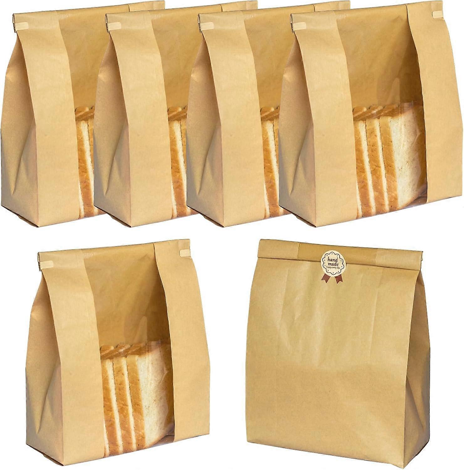 50PCS Paper Bread Bags - With Wire Seal and Window, Large Bakery Bread Bags for Homemade Bread, 50 Label Stickers