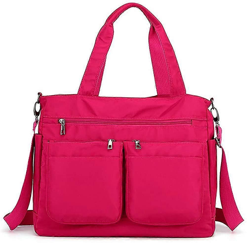 Work Bags For Women Large Tote Bag Waterproof Travel Laptop Bag Designer Hobo Nylon Shoulder Bag(rose Red)