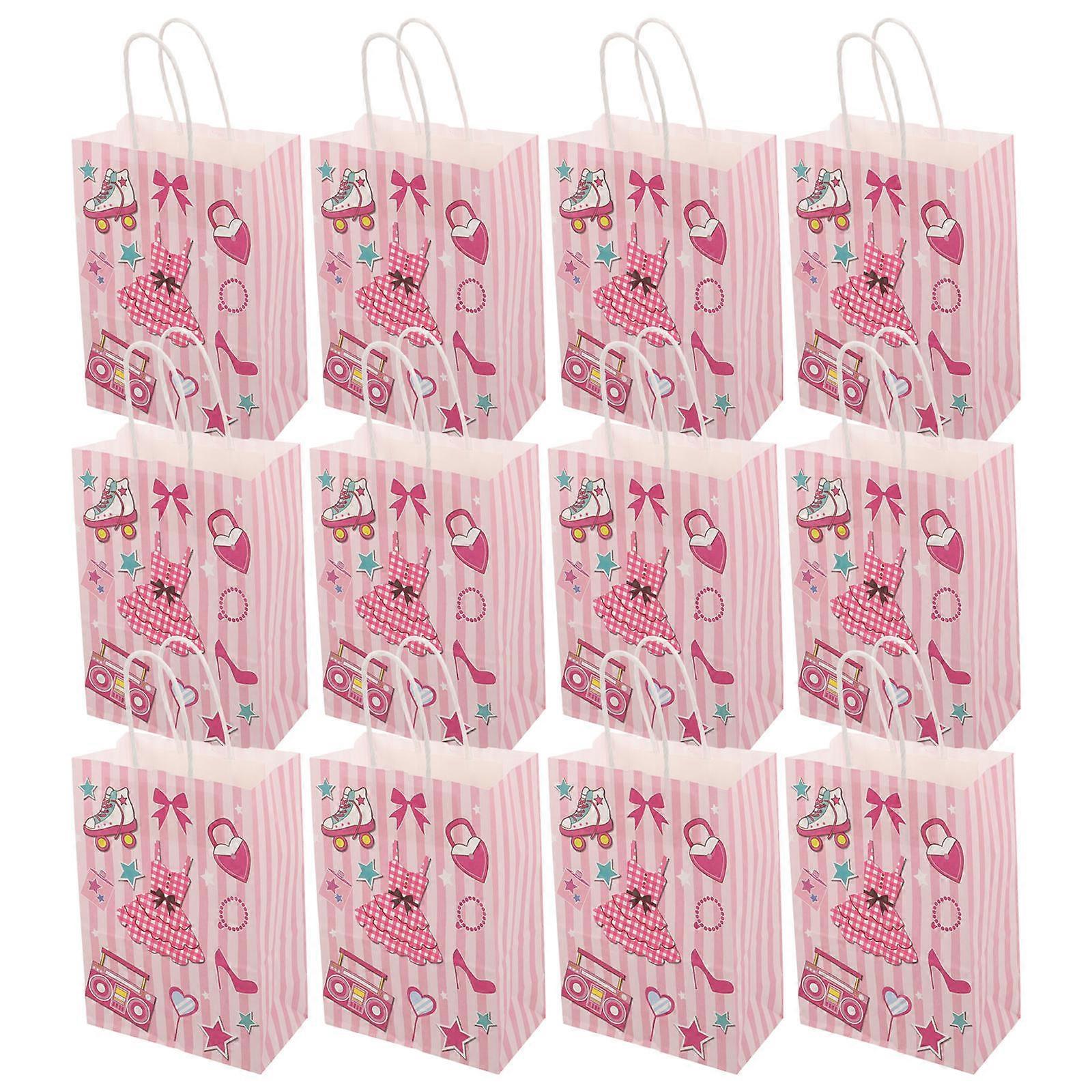 Valentine's Day Packaging Bags Valentines Day Paper Bags Rectangular Shape Pink 8.25X5.78X3.22in Storage 12Pcs