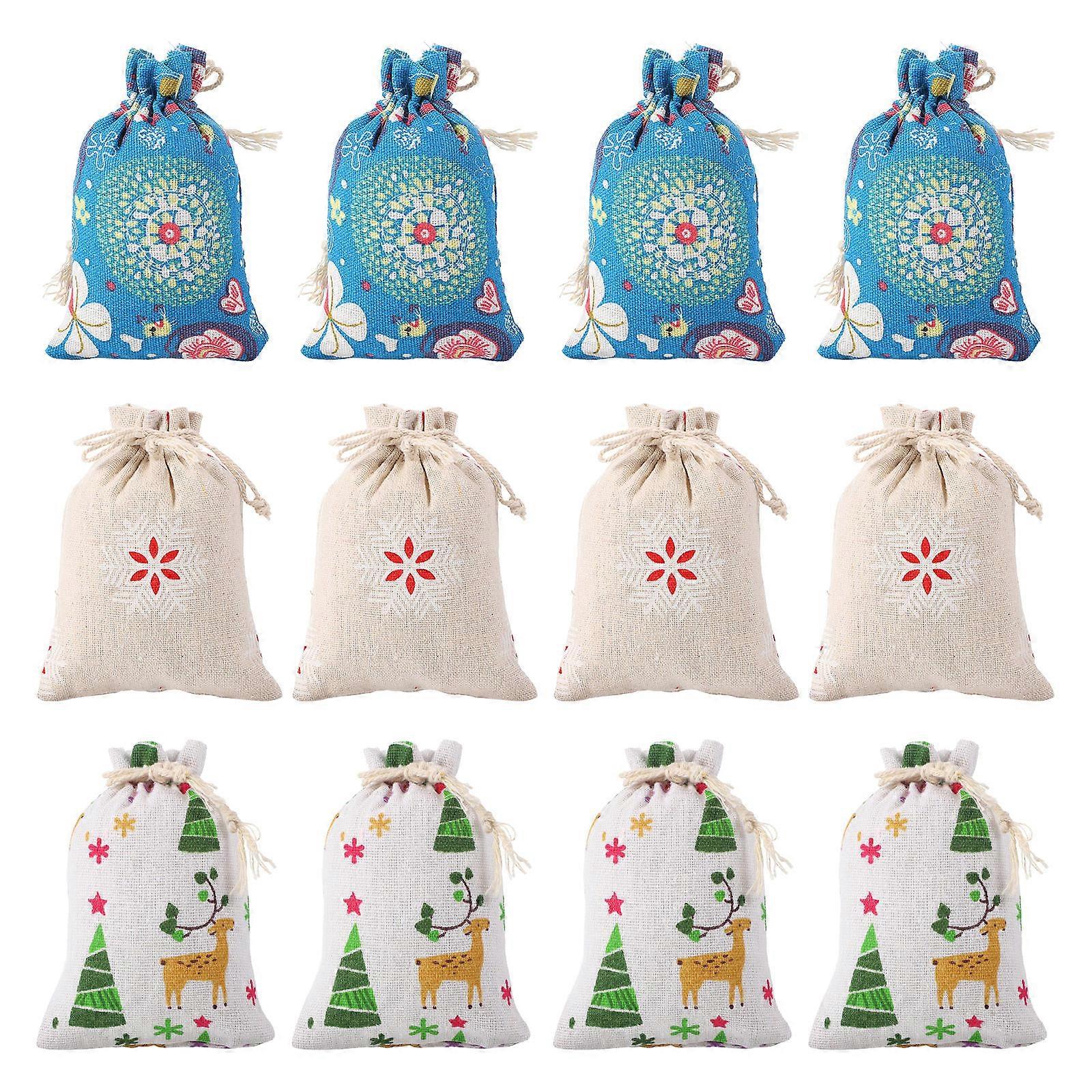 Cookie Bags Xmas Cloth Bundle Pocket present Bag Assorted Color 14x10cm 12Pcs