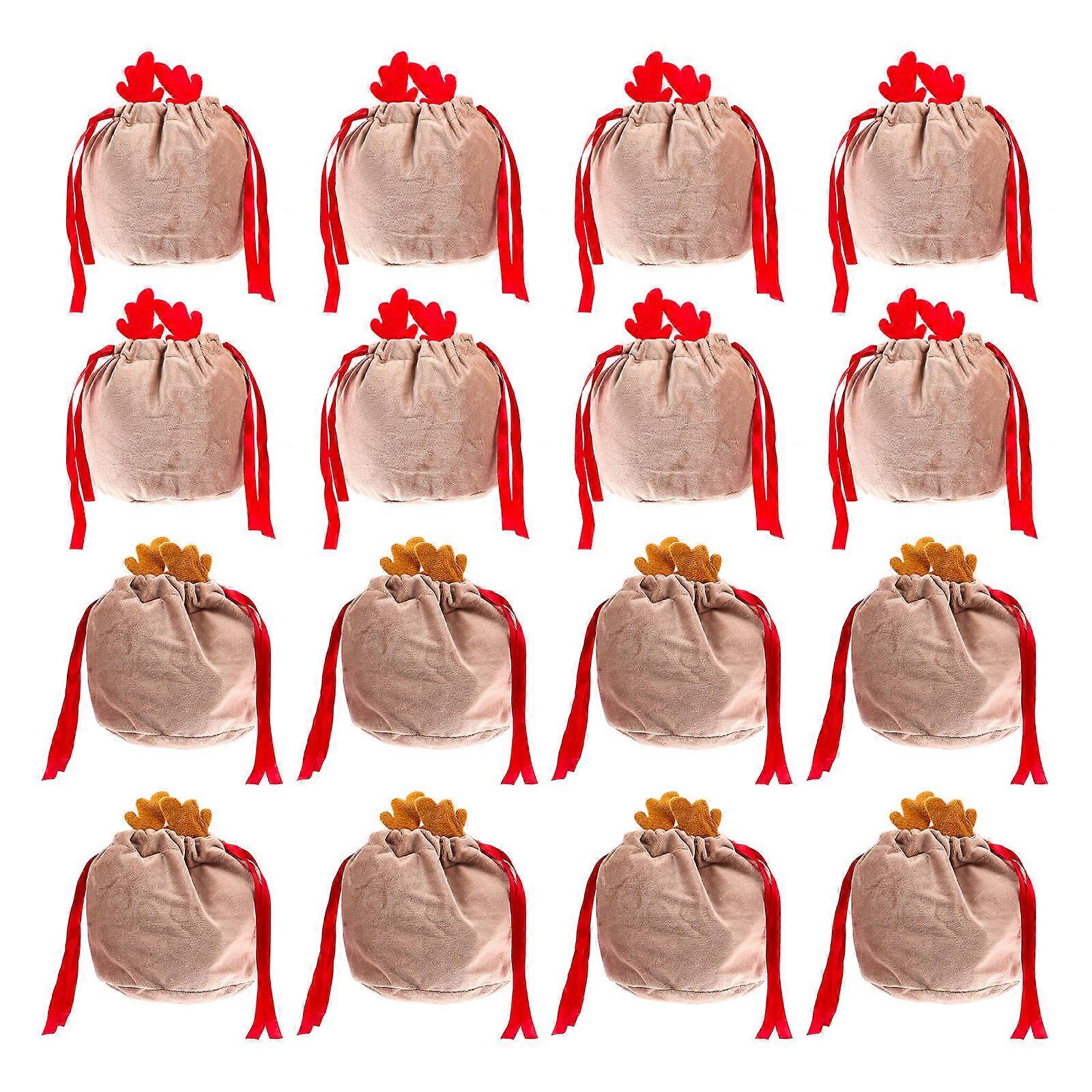 Antler Shape Christmas Gift Bags 20Pcs Festive Candy Drawstring Holders For Xmas Party Favor Light Brown Reusable Packaging