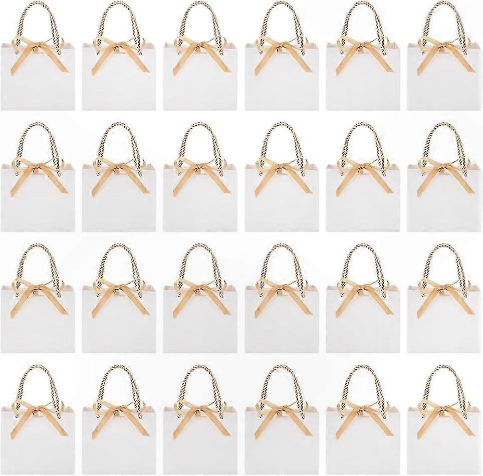 24-Pack Kraft Paper Gift Bags with Handles, White Favor Bags for Candy, Birthday, Wedding, 4.7x5.5x2.4" Portable Design with Bow Ribbon