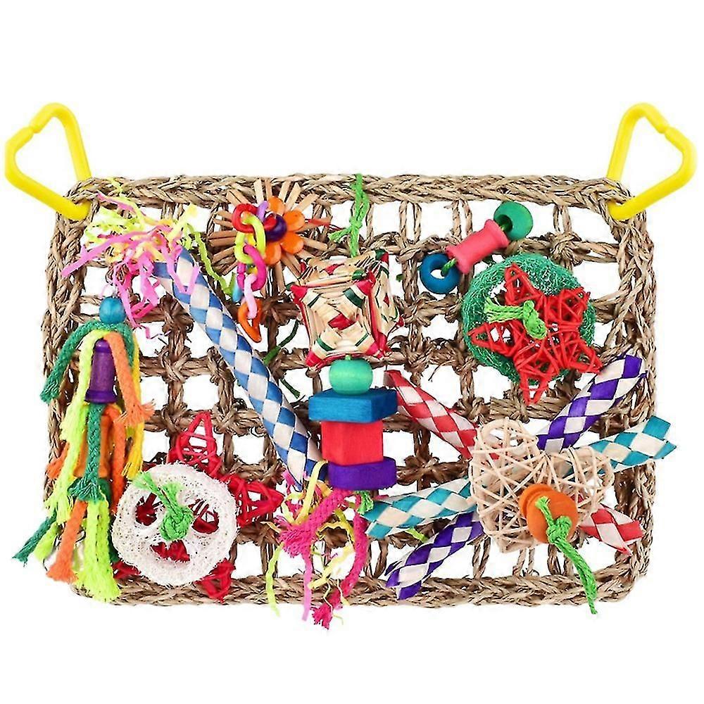 Bird Toys,bird Foraging Wall Toy,seagrass Woven Climbing Hammock Mat With Colorful Chewing Toys, Su