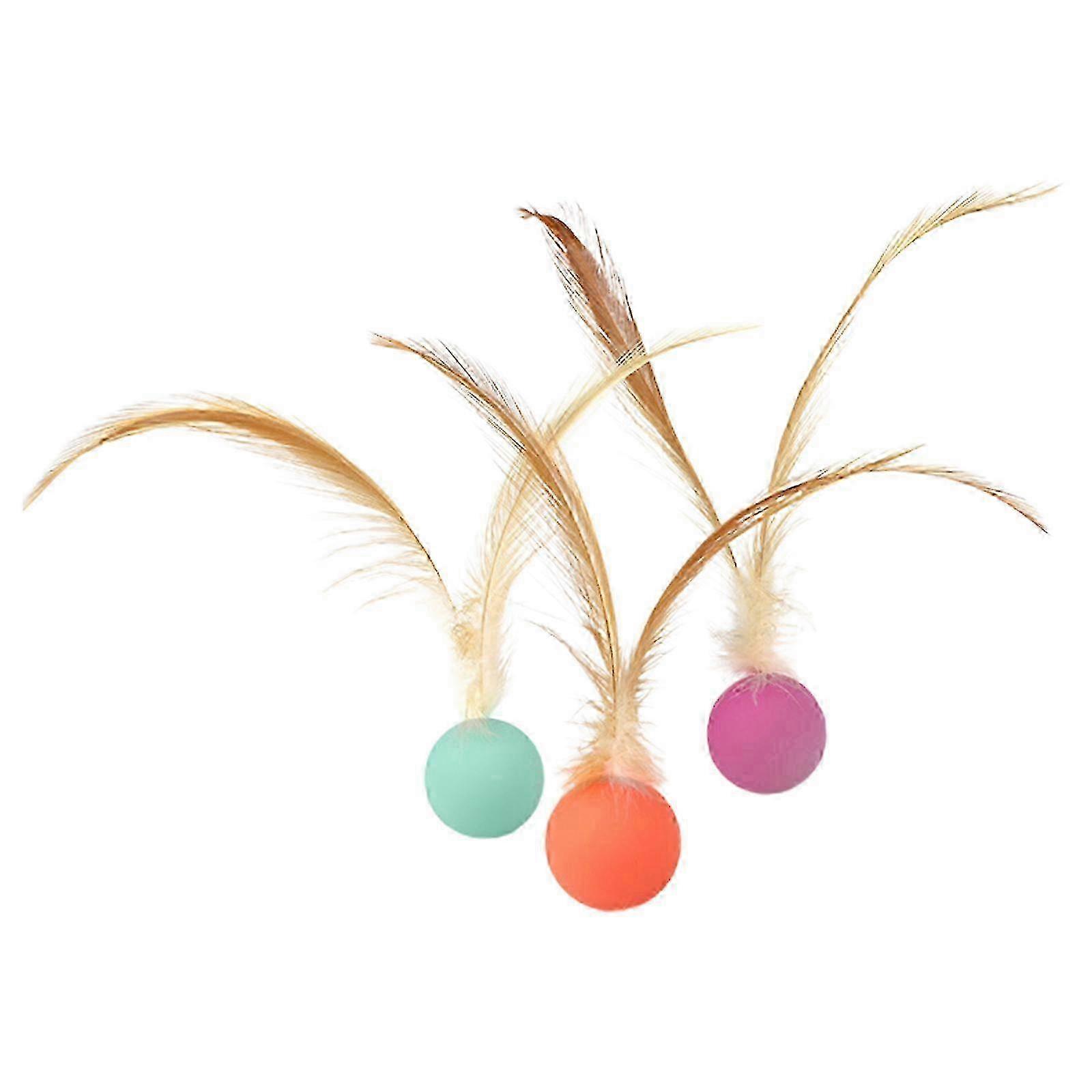 Chewable Cat Toys, 3PCS Ball Set with Feathers for Interactive Play