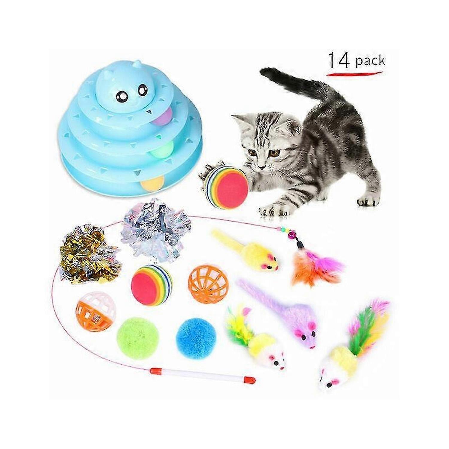 Cat Toys, Interactive Cat Toys, Three-Layer Track Roller with Three Colorful Balls, PP Material, More Durable, Stronger, Sky Blue