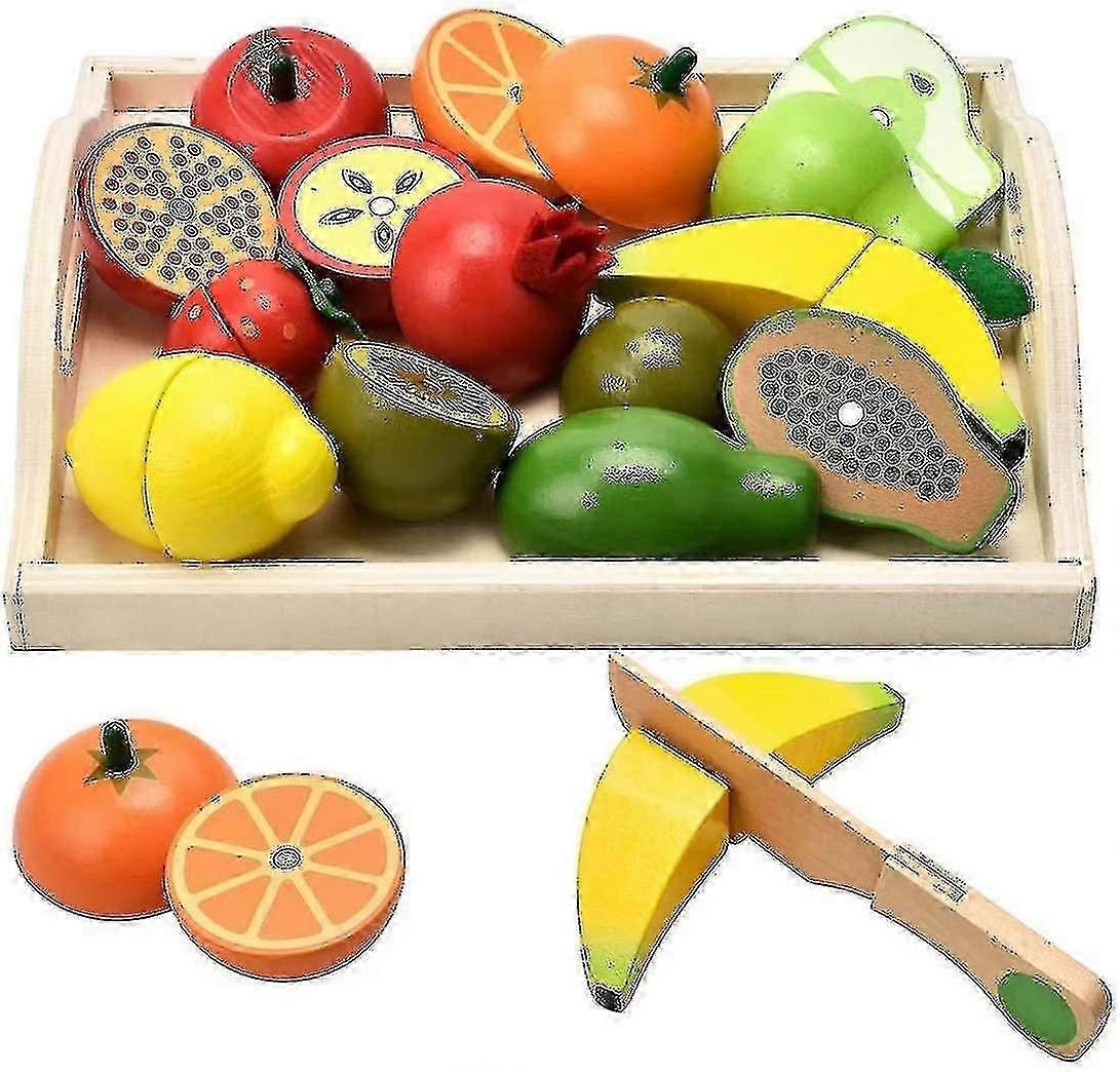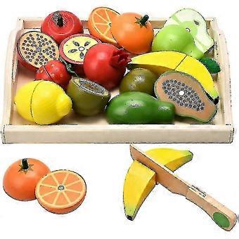 Wooden Toys - Pretend Play Food Set For Kids Play Kitchen,9 Cuttable Toy Fruit And Veg With Wooden Knif And Tray,gift Idea For Boy Girl Birthday