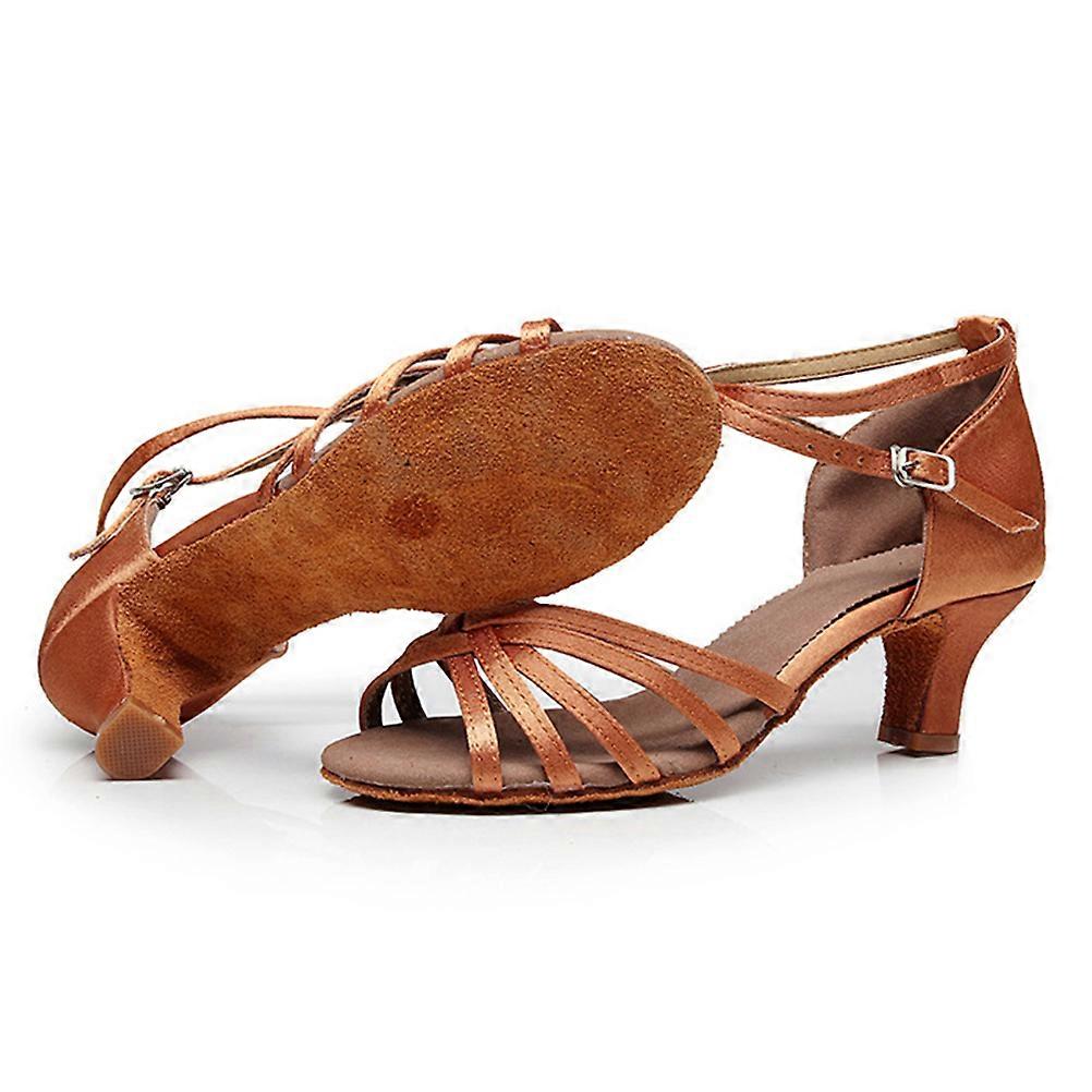 Latin American Dance Shoes Ballroom Style Amateur Use Suede Insole Brown Color 1 Pair