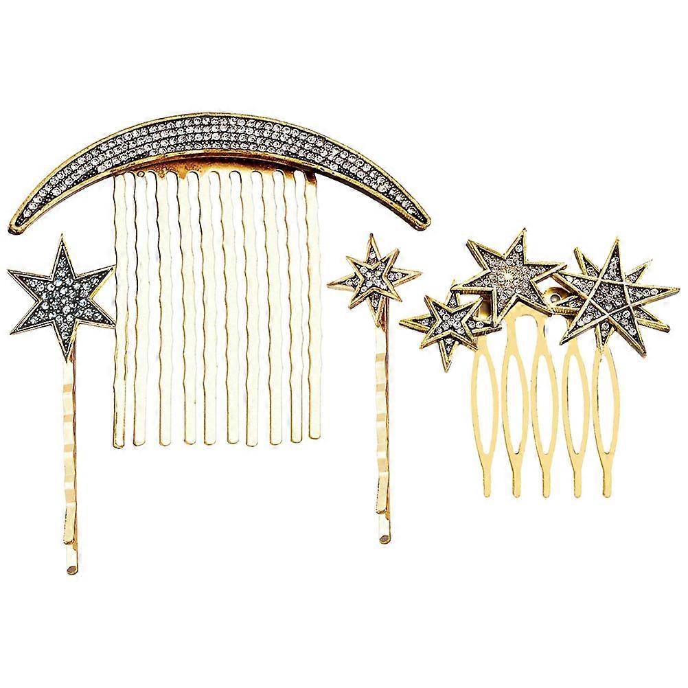 Elegant Vintage Hair Combs Set with Star and Moon Design, Delicate Side Clips for Curly Hair, Perfect for Weddings, Parties, and Special Occasions