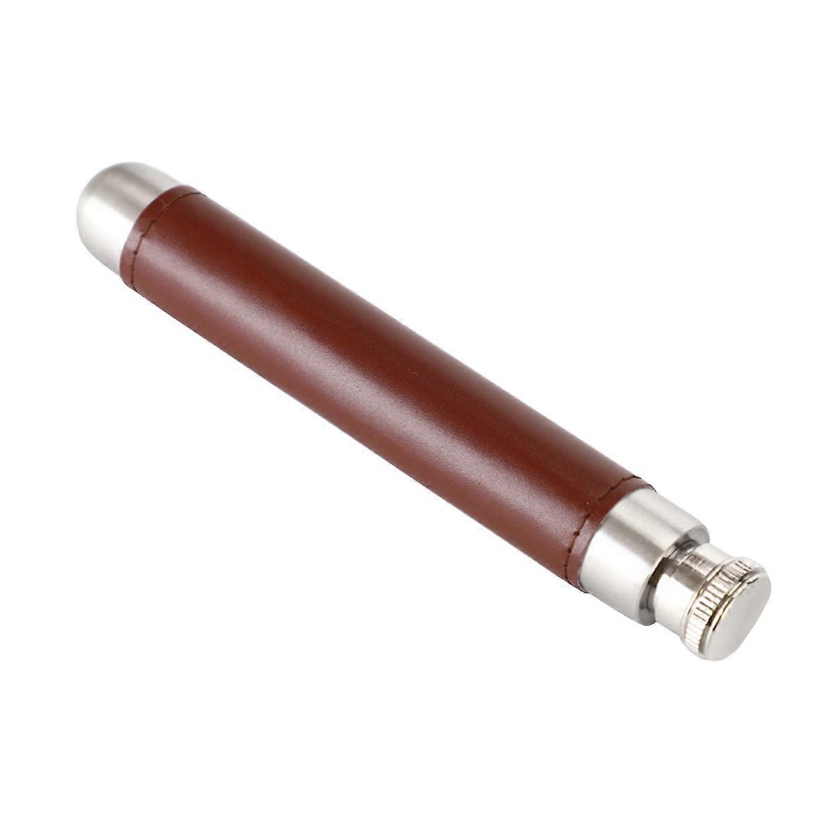 Compact Size Wine Tube Stainless Steel Leather Cover Brown Silver For Friends Family Outdoor Use 1Pcs