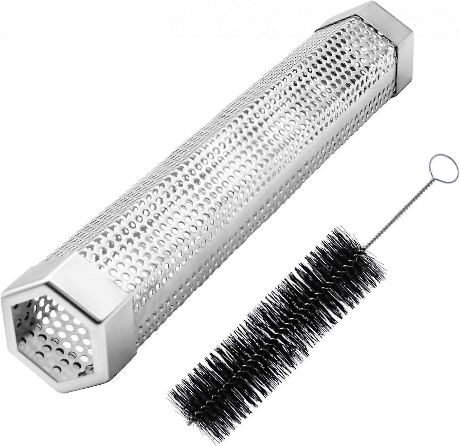 Pellet Smoker Tube, 12'' Smoker Tube with Brush, Premium Stainless Steel BBQ Wood Pellet Tube Smoker, 5 Hours of Billowing Smoke Tube Smoker for All G