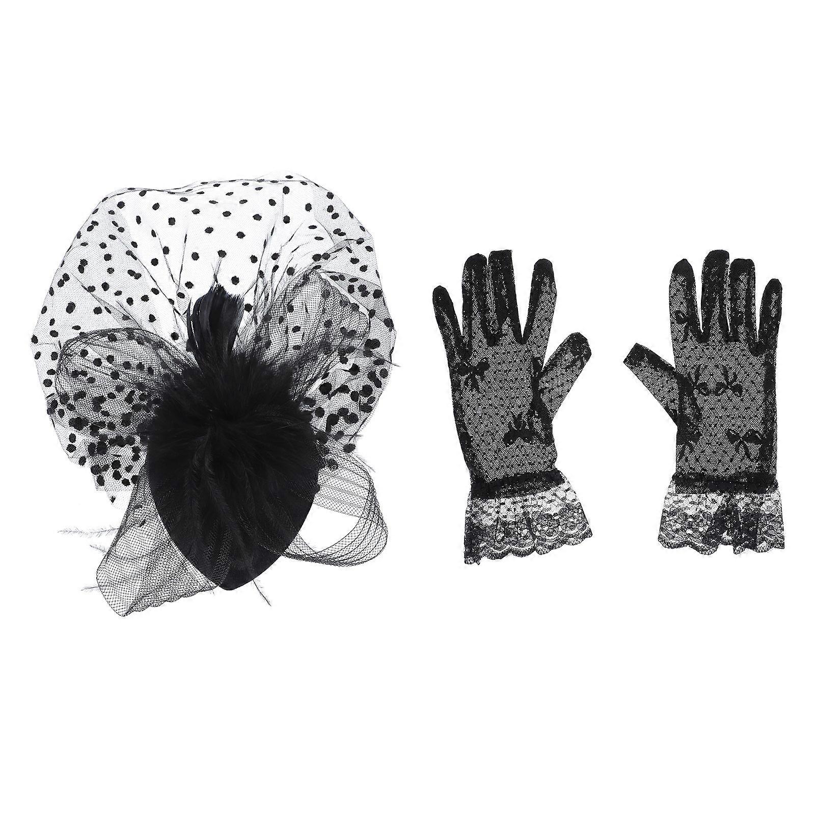Female Hair Accessory Retro Dance Party Net Yarn Hat Glove Kit Women Cheongsam Accessories Black 25x9cm Face Cover 1 Set