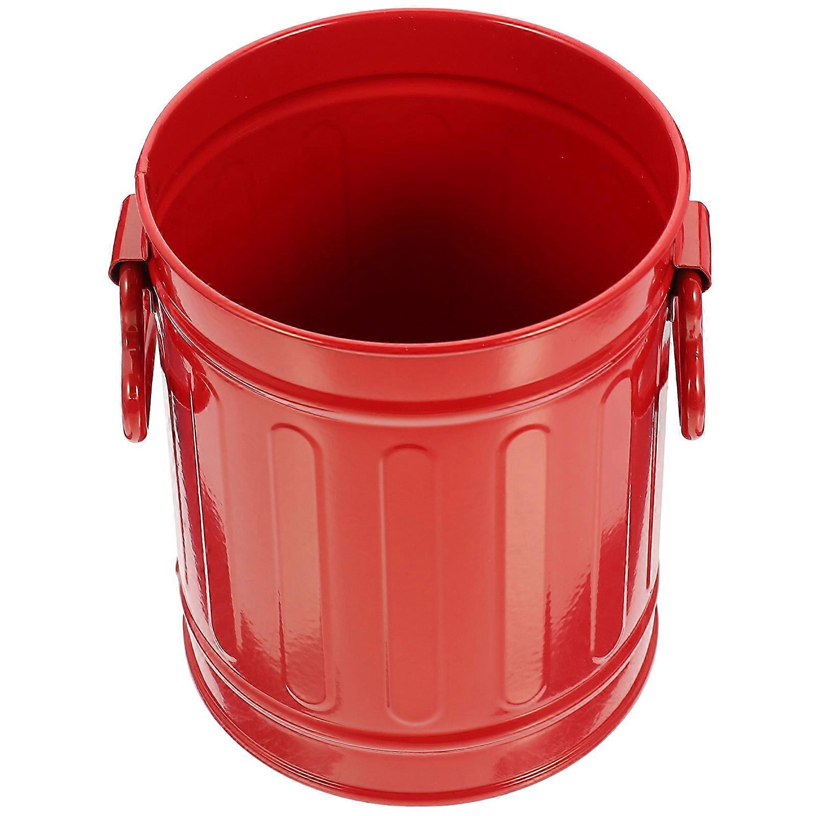 Elegant Iron Trash Can & Makeup Brush Holder Stylish Storage Container for Pens, Home, Office, Bathroom Use Red Design