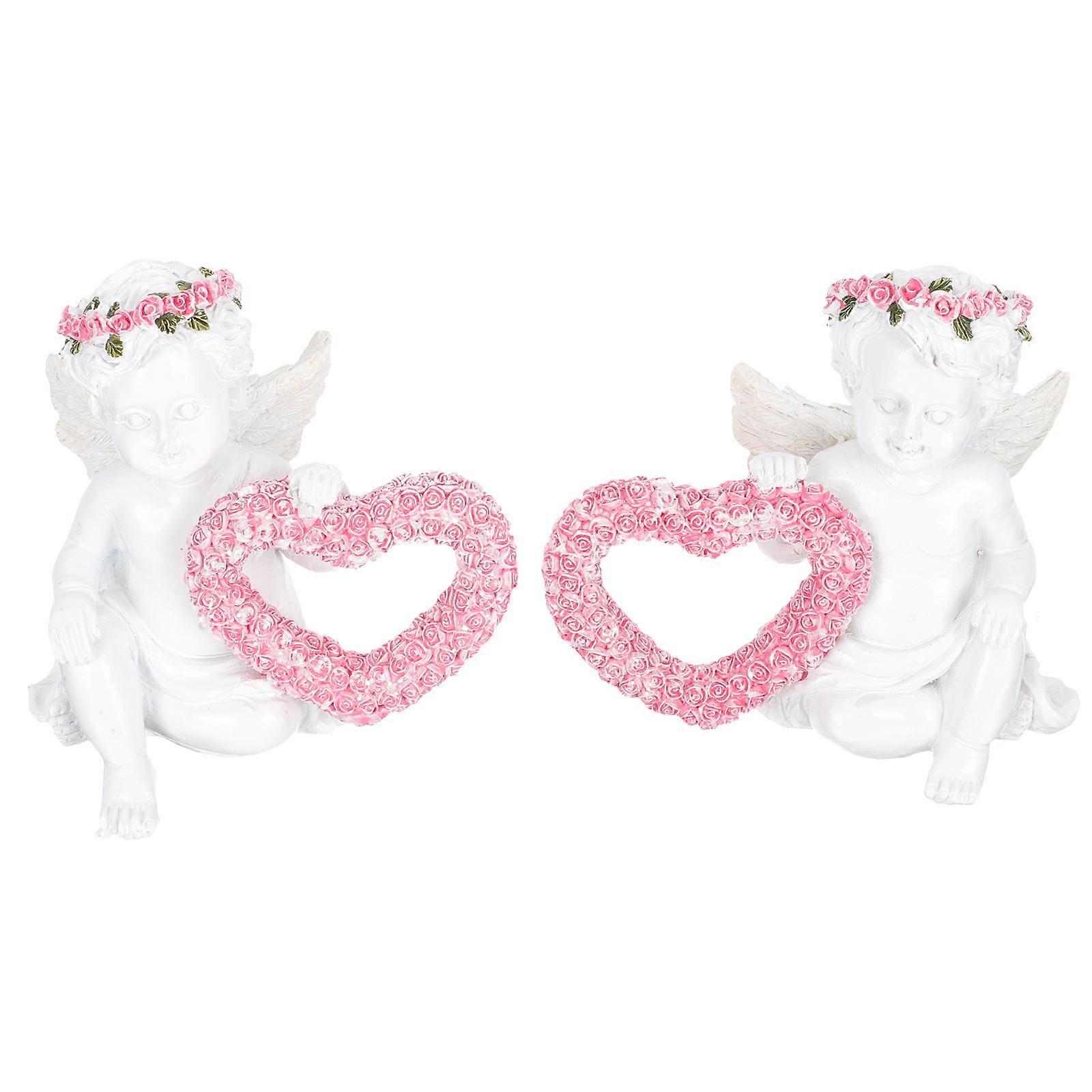 Elegant Resin Sculpture Angel Statues Indoor Use Design Heart Shape 4.7X3.9X3.1in Garden Decor 1 Pair