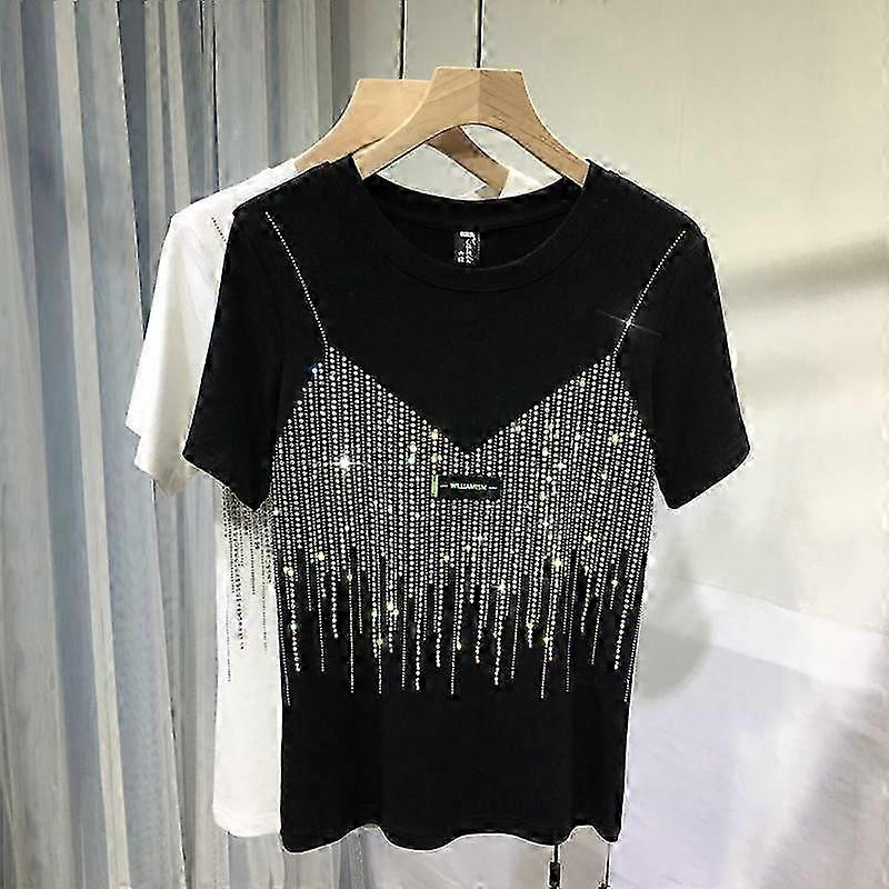 Chic Summer Diamond Short Sleeve T Shirt For Women Casual Solid Color O Neck T-shirt Ladies Streetwear Tees Top