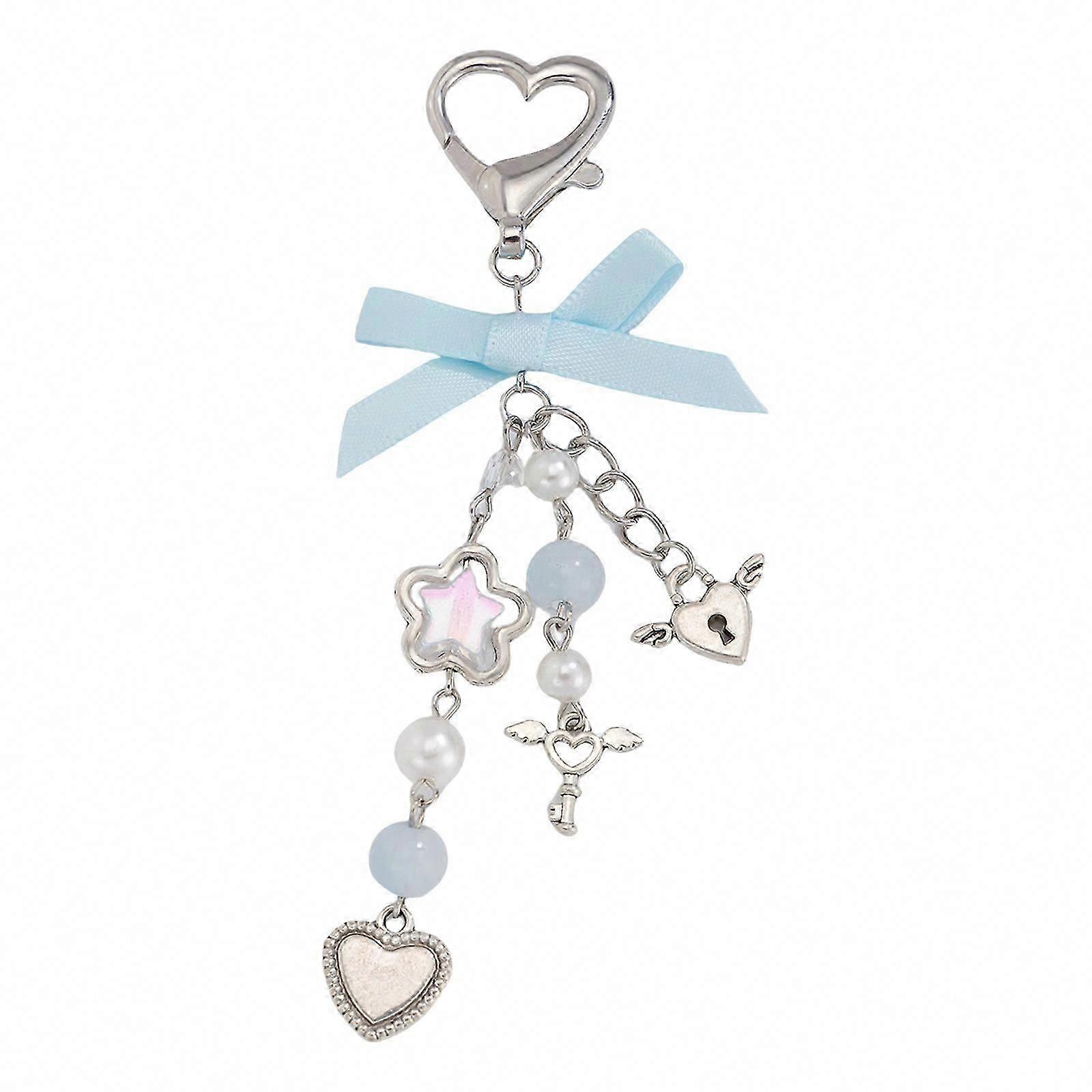 Elegant Silver Love Heart and Bowknot Keyring Portable Keuchain Pendant Stylish Accessory for Keys and Bags Decoration