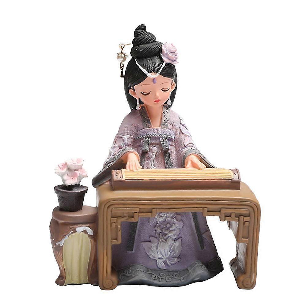 Elegant Ancient Style Hanfu Girl Resin Statue for Home Decoration – Retro Desktop Decor for Shelves and Cabinets