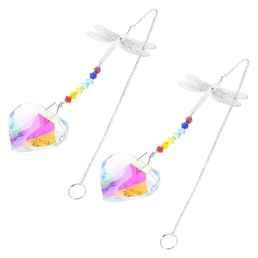 Elegant Crystal Dragonfly Suncatchers 2Pcs For Homeowners Wedding Garden Decor Featuring Heart Shaped Hanging Chain