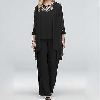 Elegant 3-Piece Mother of the Bride Pant Suit Set Chiffon Evening Gown for Women, Plus Size Formal Wedding Outfit