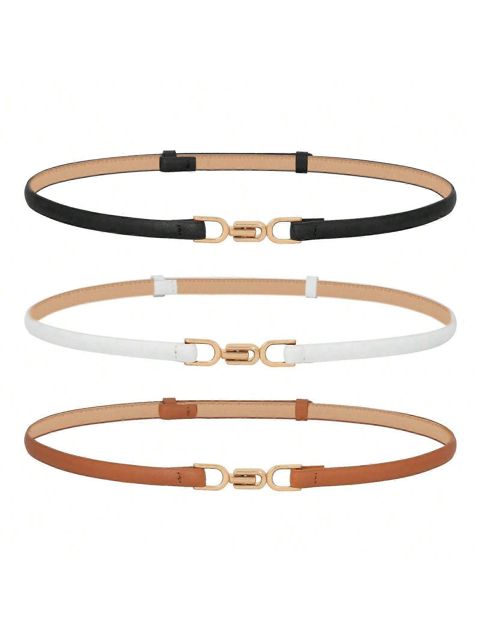 Elegant 3 Packs 2000s Style Women Skinny Leather Belt Adjustable Thin Waist Belt Fashion Buckle Belt For Dress And Jeans Pants