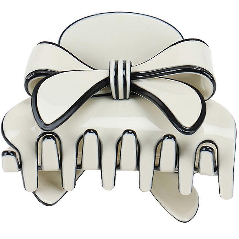 Stylish Bow Hair Clip White Beige Metal Spring Non Slip Grip Casual Office 1Pack