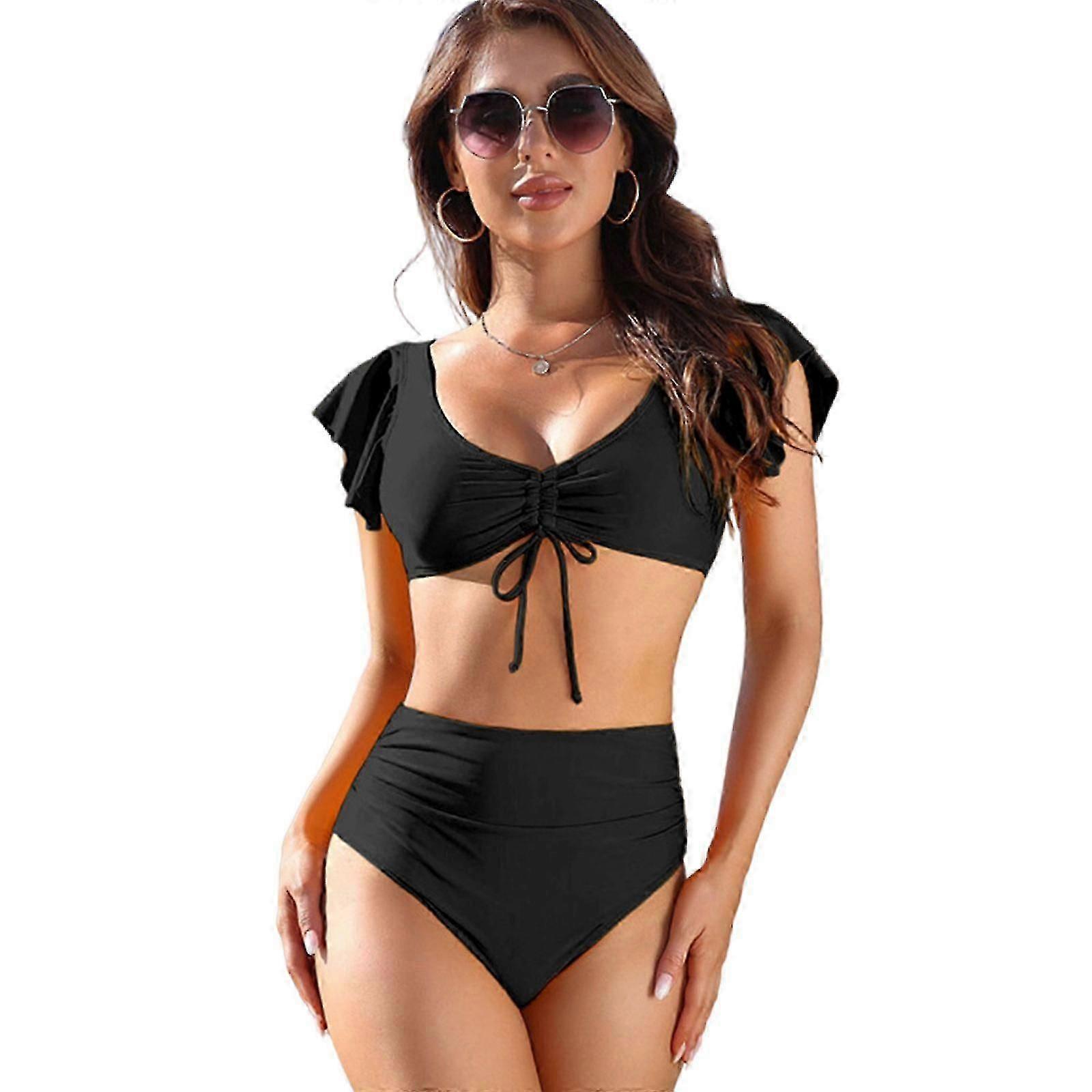 Stylish Sexy Bikini Swimsuits Good Elasticity Solid Color For Girls Women 2pcs