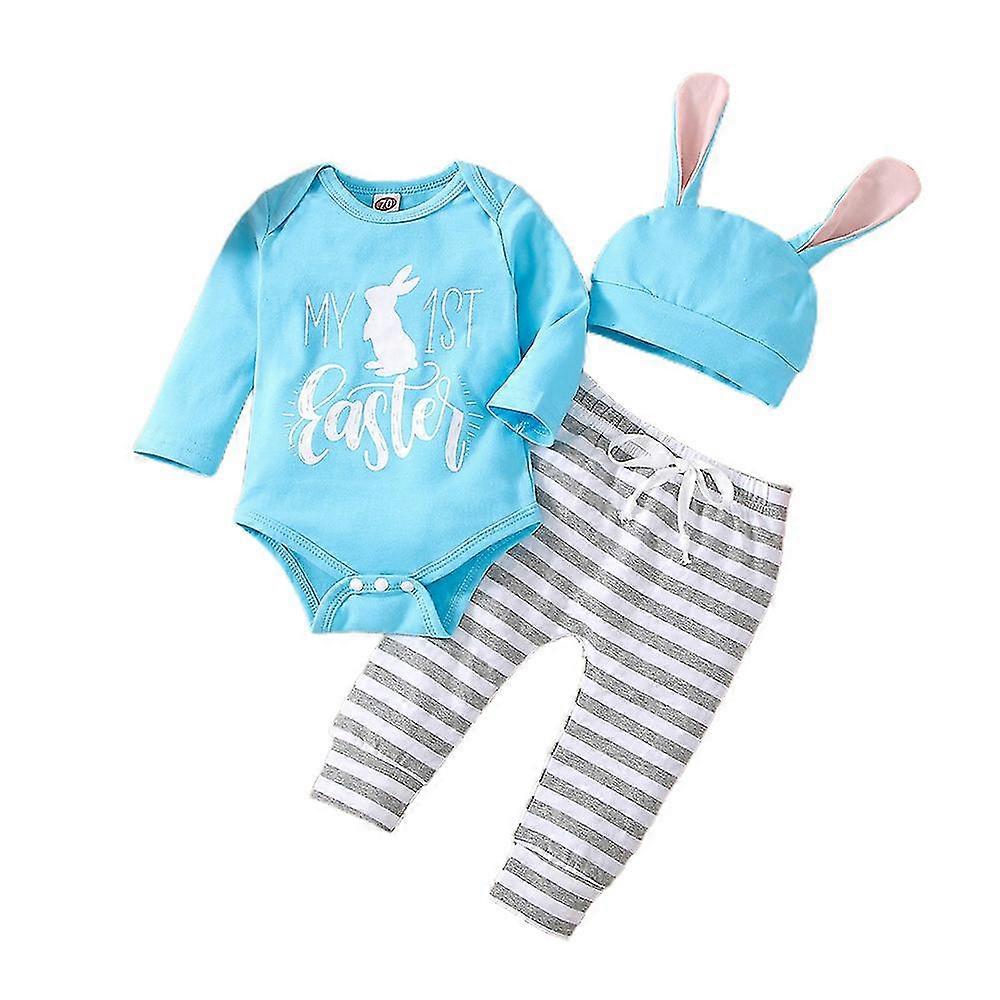 My First Easter Outfit Infant Baby Boys Girls Long Sleeve Print Romper Striped Pants With Bunny Ear Hat Easter Clothes Sets