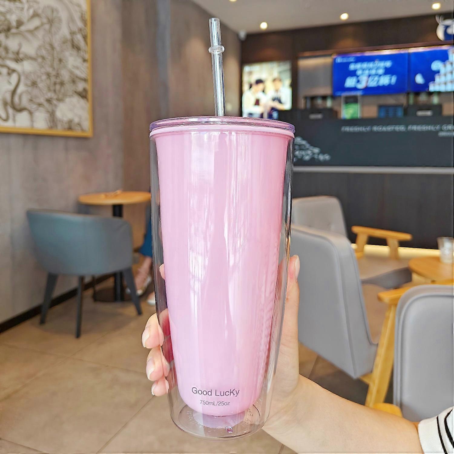 Creative large capacity straw water cup foam double layer crushed ice cup couple suction cup