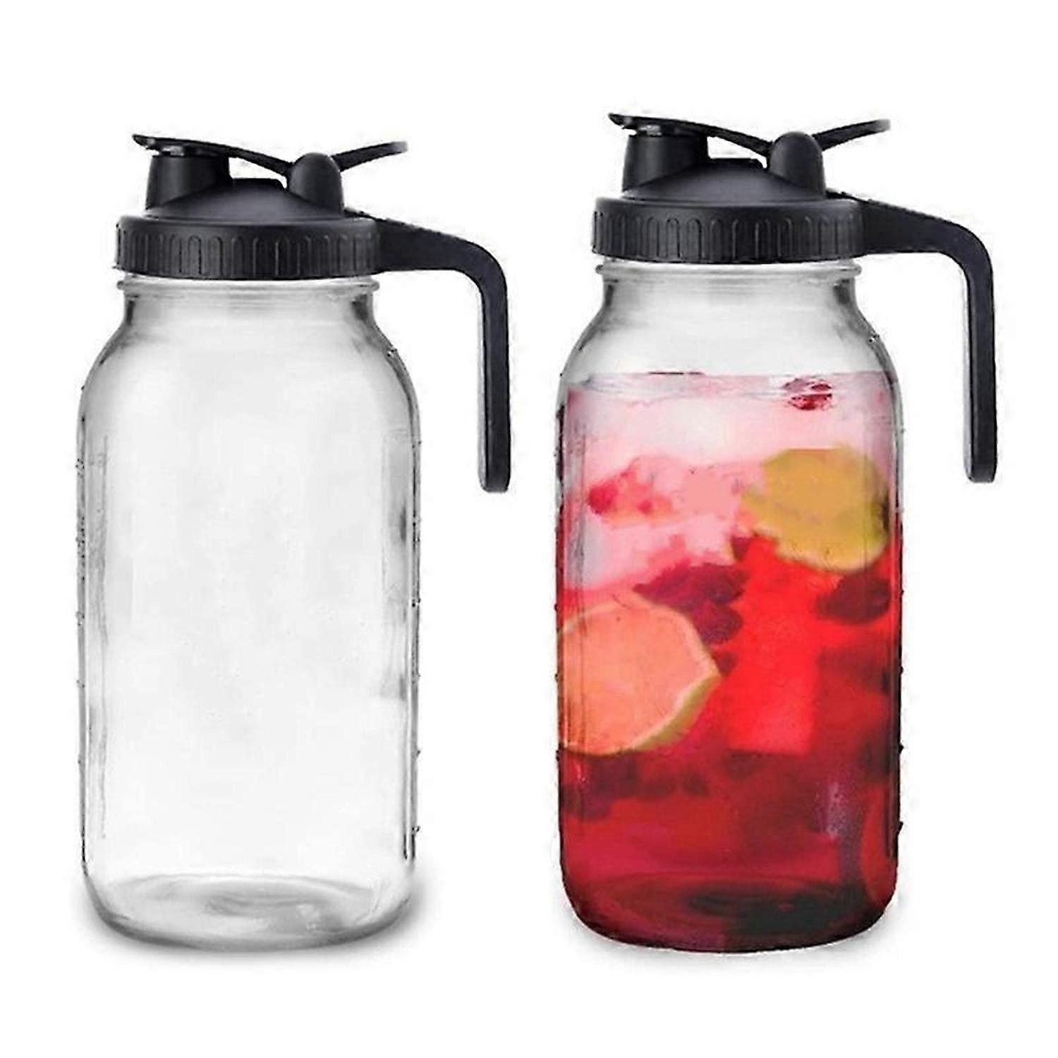 64Oz Glass Pitcher with Lid Wide Mouth Jar Leak-Proof Water Jug, for Water, Juice, Milk, Tea, Iced C