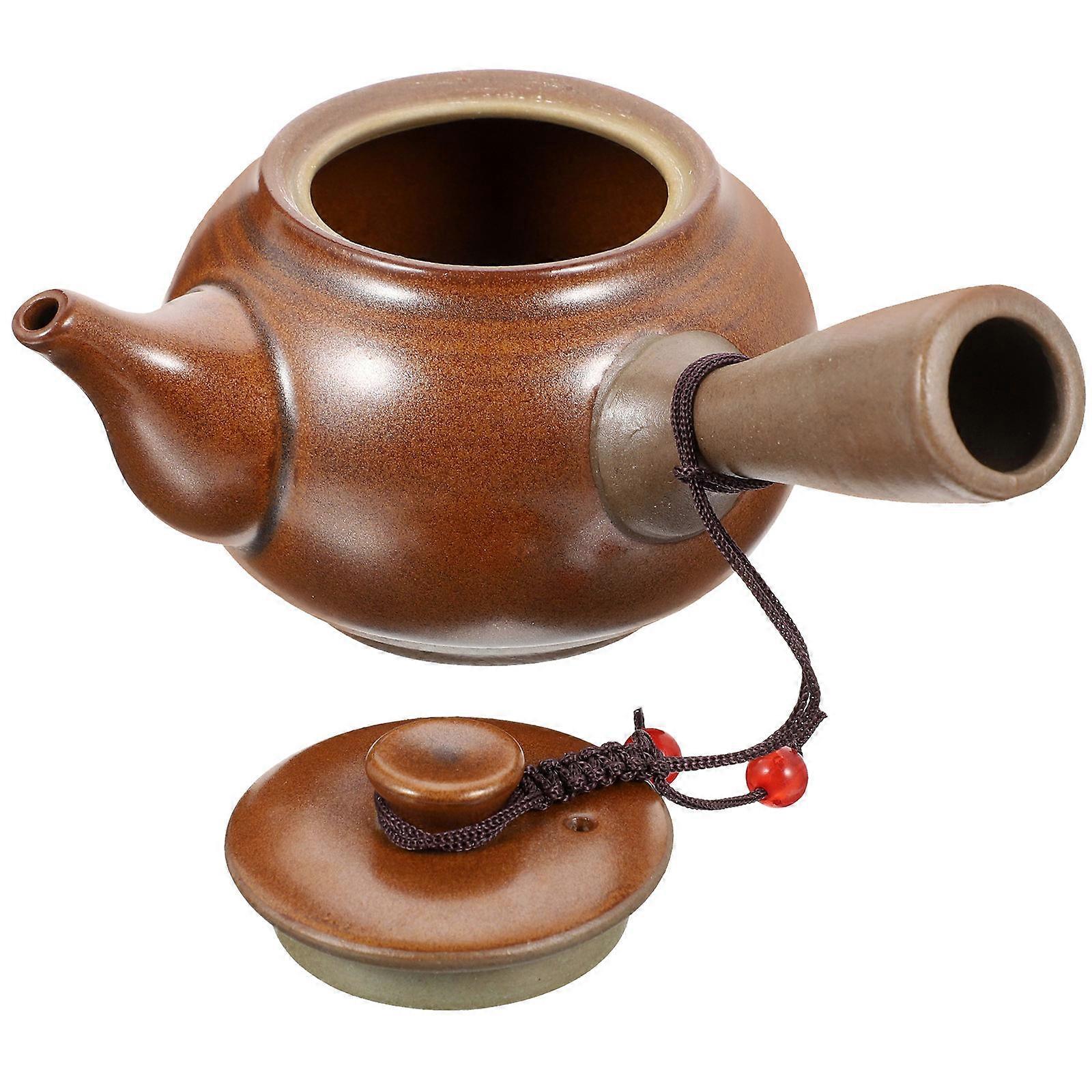 Small Ceramic Teapot Side Handle Comfort For Friends Visits Dark Brown 5.70X4.32X2.75in 1Set
