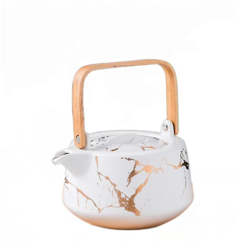 Japanese Style Black And White Ceramic Teapot With Marble Pattern Tea Set