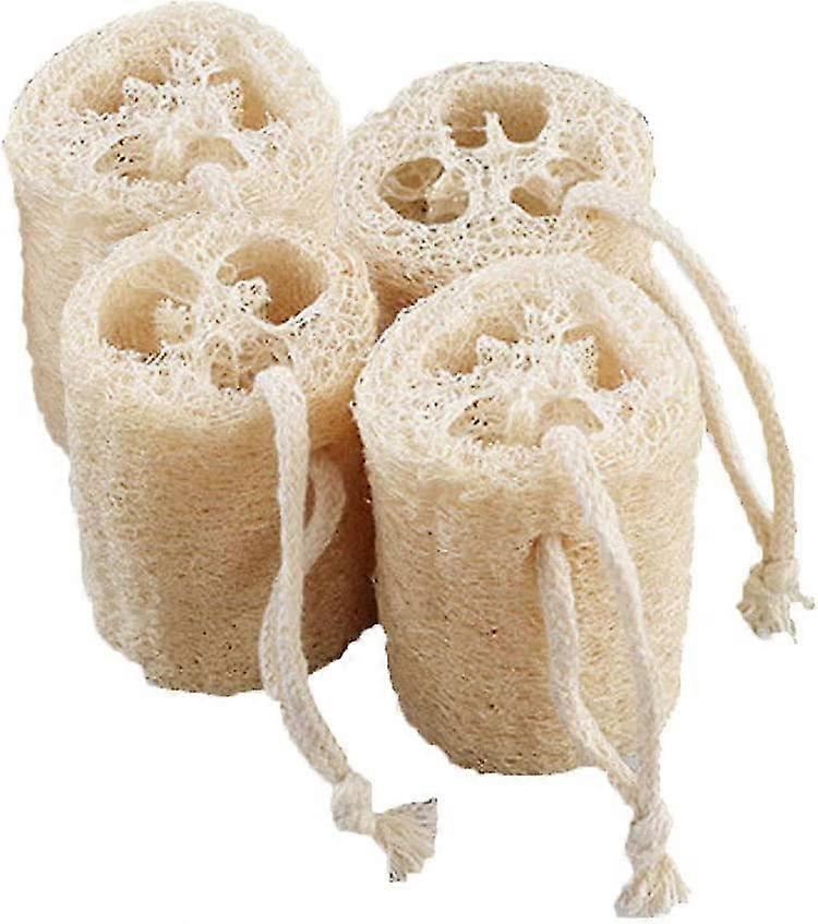 Natural Exfoliating Loofah Sponge, 4" Eco-friendly Unbleached Bath Loofah, 4-pack