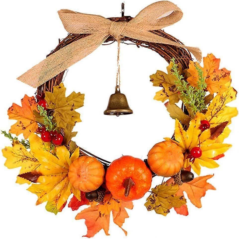 Artificial Fall Wreath - Decorative Maple Wreath for Thanksgiving Halloween Christmas