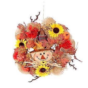 Fall Wreath Burlap Front Door, Wreath With Artificial Maple Leaf Pumpkin Flower Pine Cone Autumn Ha