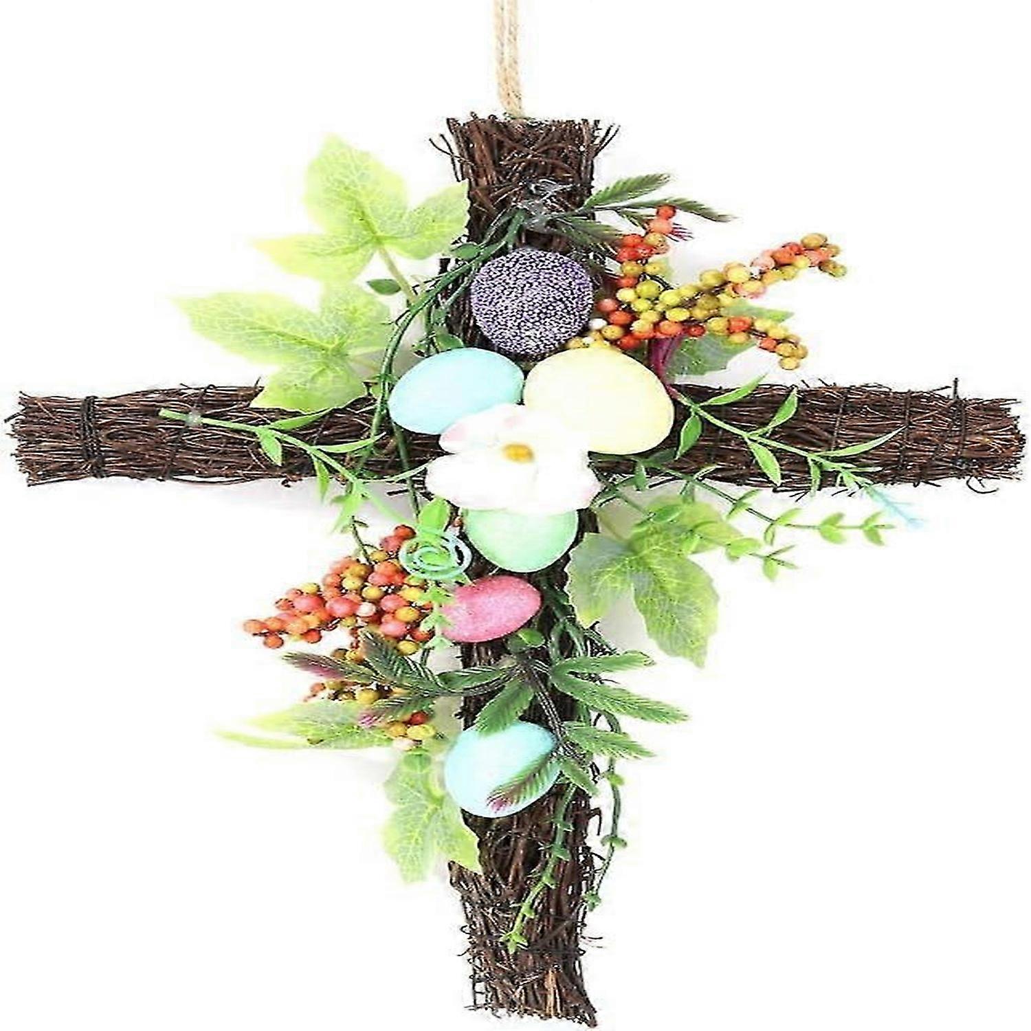Easter Egg Wreath,Easter Garlands Front Door Wreaths,Spring Easter Decoration with Easter Eggs and Artificial Leaves and Flowers for Front Door, Wall