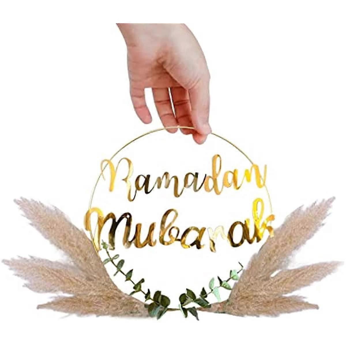 DIY Ramadan Kareem Hoop Wreath, Eid Mubarak Floral Wreath for Front Door, Eid Hanging Decorations for Home Party 13.8 Inch