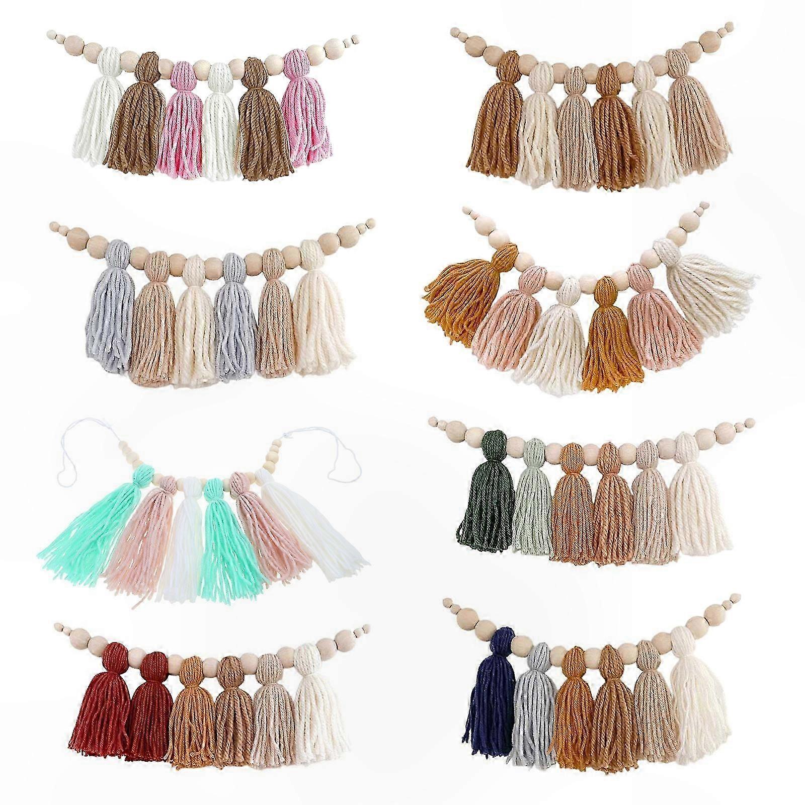 Tassel Garland with Wooden Bead Party Backdrop Bohemian Home Wall Hanging Decor