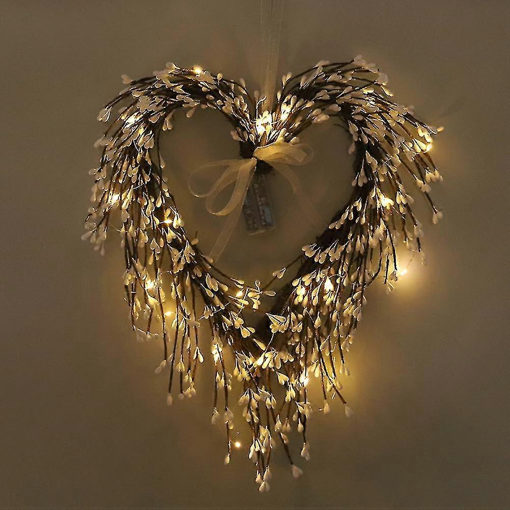 Valentine's Day Heart Wreath with Twigs and Light for Living Room Wall Staircase Door Decoration Wreath