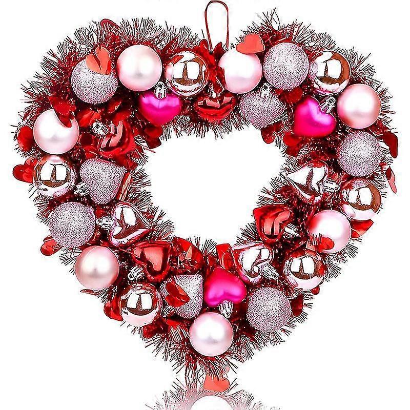 Valentine's Day Heart Wreath with Glitter Pink Balls, 14 Inch Front Door Decor