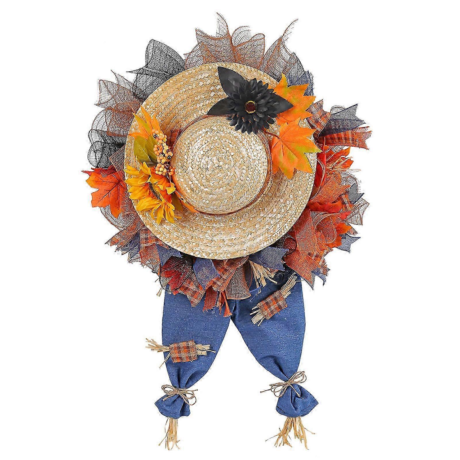 Hanging Wreath with Straw Hat and Denims Jeans Festival Garlands for Home Doorway Stylish Thanksgiving Party Decoration
