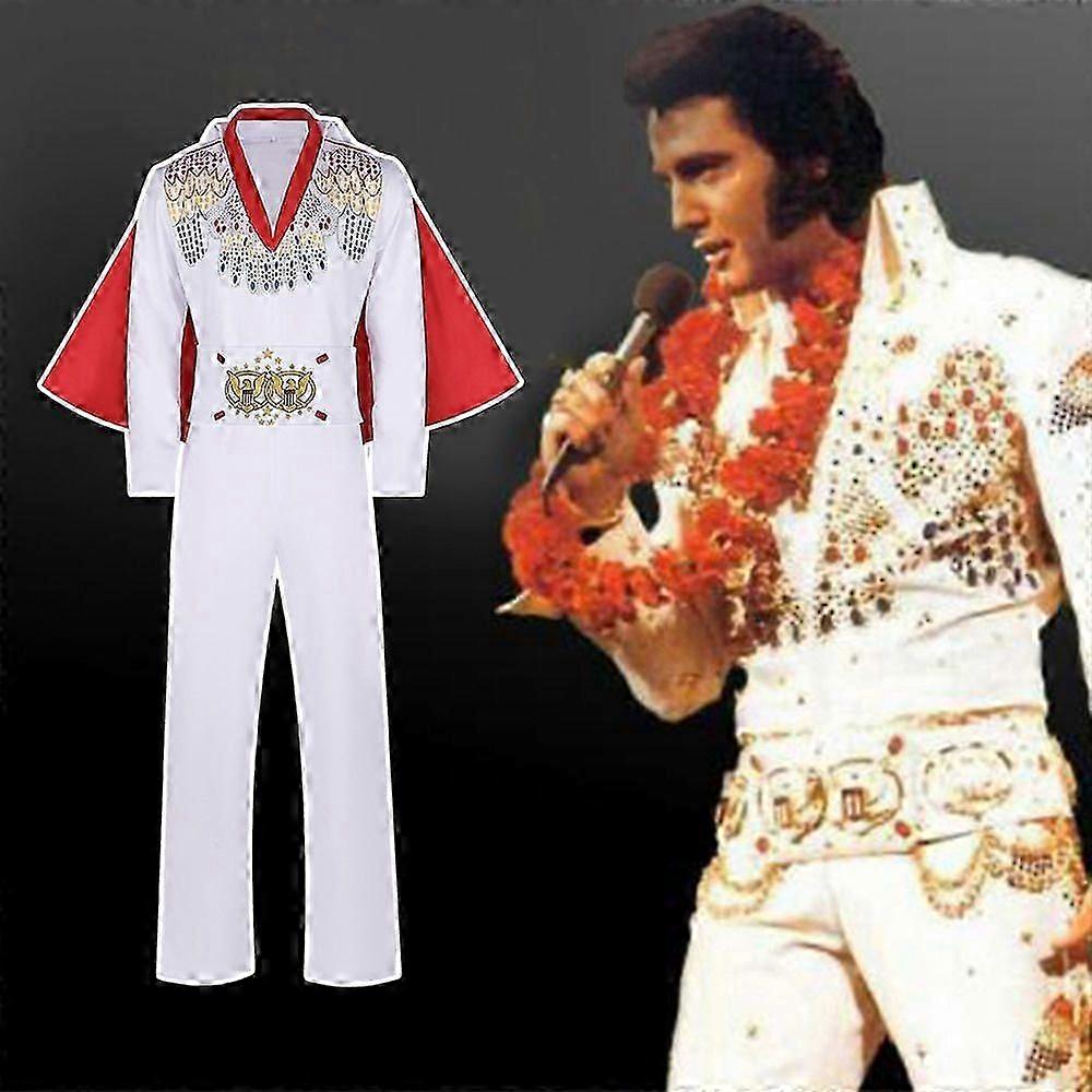 Elvis Presley Stage Costume White with Cape Halloween Party Cosplay Performance Outfit