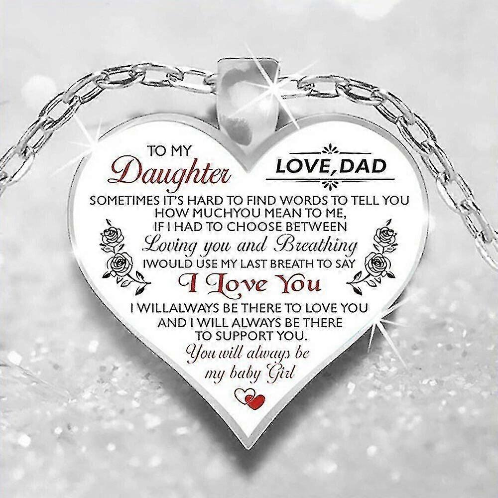 To My Daughter Son I Love U Dad Silver Heart Pendant Necklace Jewellery Gift