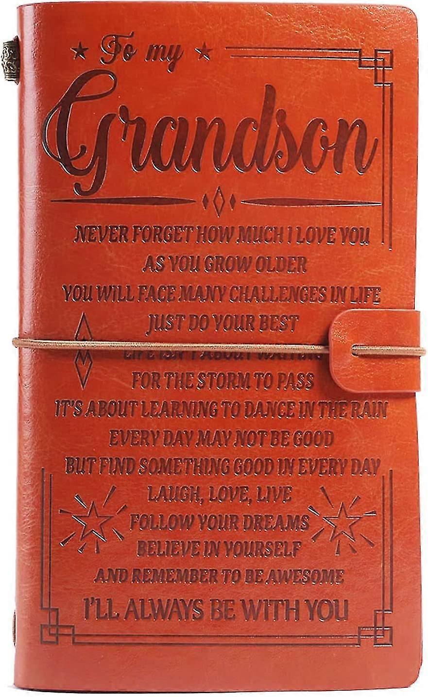 To My Grandson Leather Journal - Travel Notebook 7.9"x4.7"pocket Note Book Vintage Lettering Refillable Leather Notebooks Diary Journal Sketch Book Ha