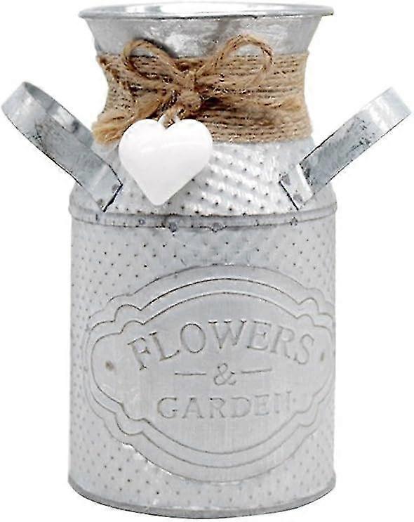Decorative Vintage Chic Metal Vase, Milk Jug, Shabby Style, Rustic Style, Metal Flower Bucket for Indoor Outdoor Garden Home Decoration (Blue)