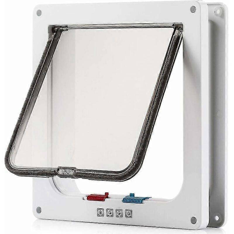Large Cat Door (Exterior Size 9.8" x 9.2") with 4 Way Latch Cat Flap, Waterproof Door, White Pet Door Kit for Kitten and Small Dogs with Less Than 23"
