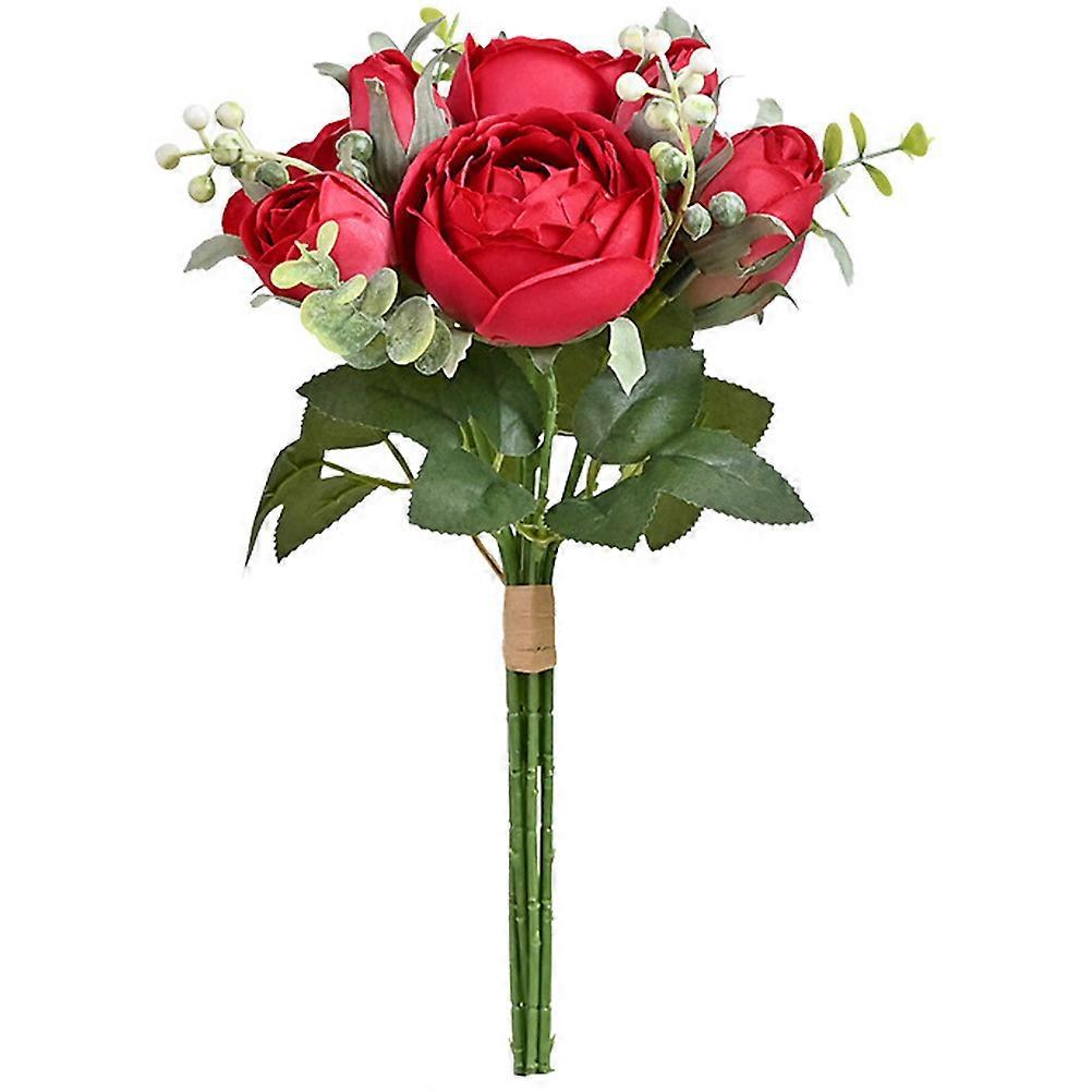 Red Silk Wedding Bouquet with Plastic Stem for Bridal Bridesmaid Use Versatile Decorative
