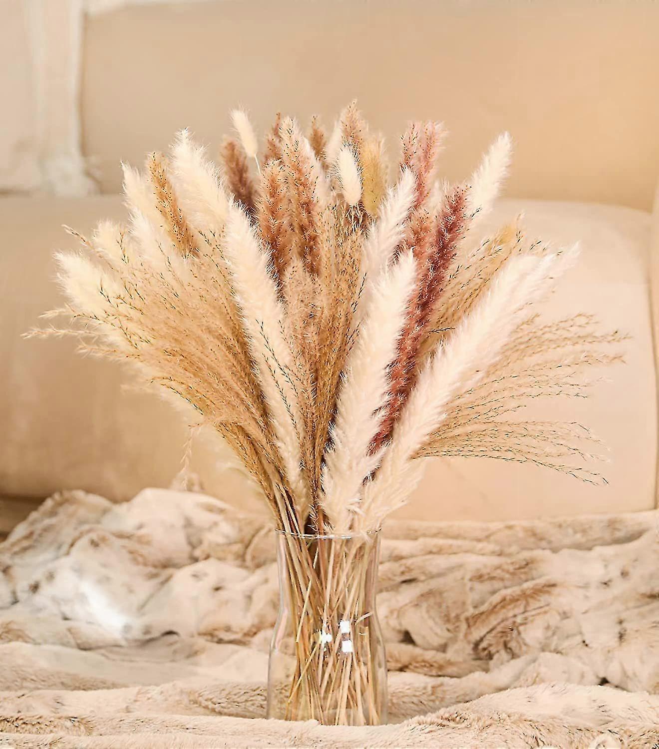 Bohemian Style Natural Dried Grass Bouquet, 85-Piece White Flower Arrangement for Home Decoration, Rustic Artisan Design