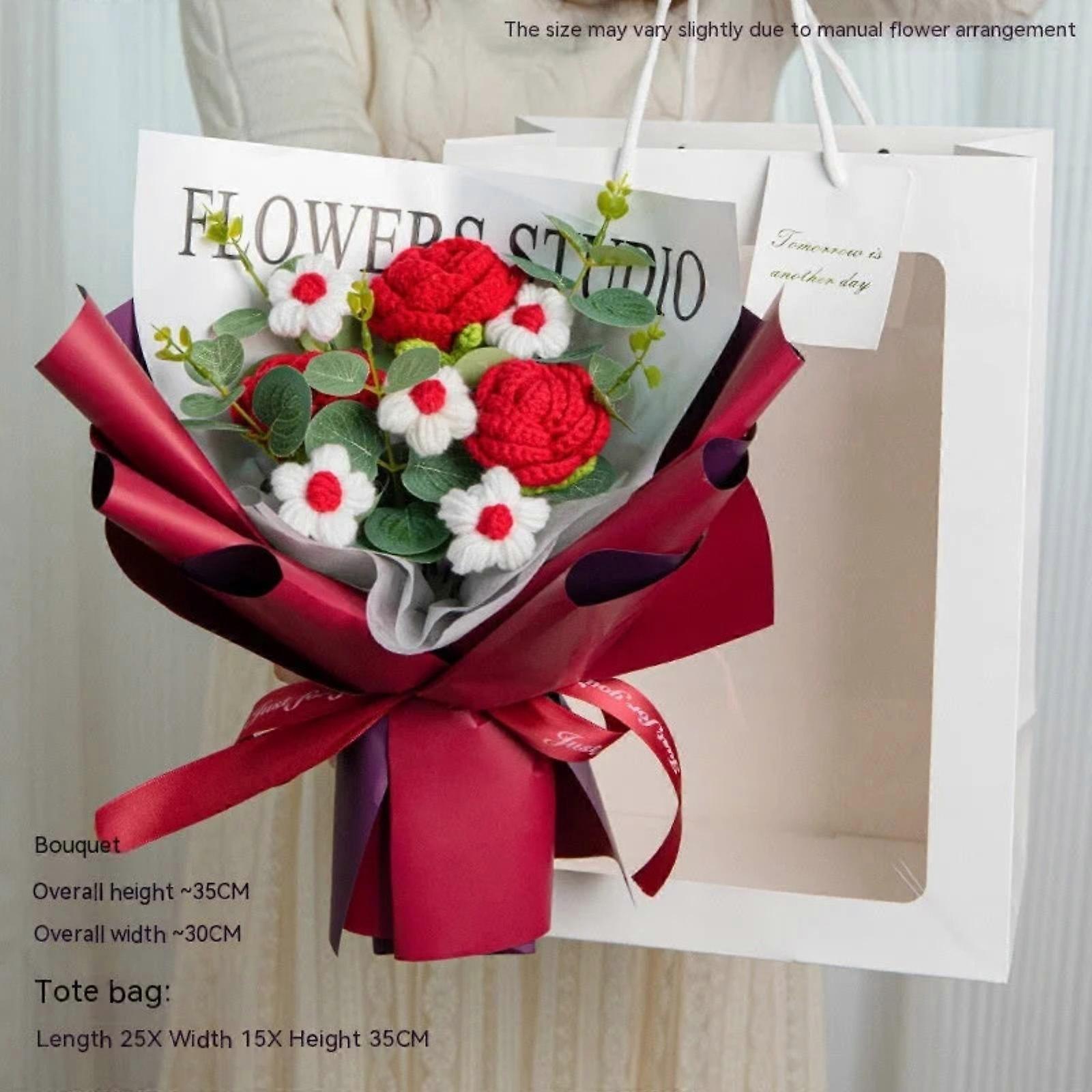 Finished Hand-woven Bouquet Of Roses For Valentine's Day Simulated Dried Flower Gift For Girlfriend's Birthday FEATURES: Our crochet flowers are crafted with passion and precision, showingcasing the artisanal that sets them . Each is delicately woven with care, resulting in a bouquet that captures the beauty of real flowers while offering the lasting allure of handcrafted art. Whether it's a birthday, anniversary, our Crochet Flowers Bouquet makes for a thoughtful and meaningful gift. Show your appreciation with a unique and enduring of affection that will be cherished forever. Packaging: 1X bouquet