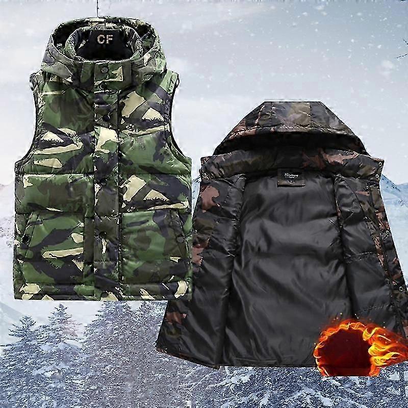 Plus Size Men Sleeveless Jacket Winter New Casual Hooded Cotton Padded Sleeveless Vest Man Warm Camouflage Sports Waistcoats