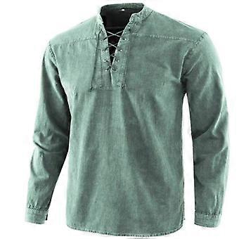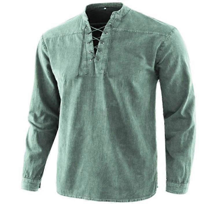 Plus Size Men Vintage Long Sleeve Blouse Shirt Casual Stand Collar Lace Up Tee Tops